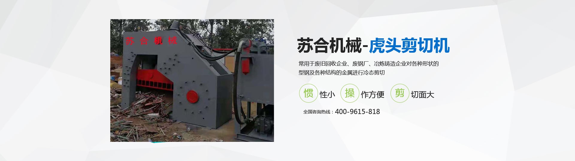 虎頭剪具有體積小、重量輕、慣性小、噪音低、動作平穩(wěn)、操作方便、靈活、剪切斷面大、剪刀口調整方便等優(yōu)點,操作使用安全。常用于廢舊回收企業、廢鋼廠、冶煉鑄造企業對各種形狀的型鋼及各種結構的金屬進行冷態(tài)剪切。剪切機的用途就是用來剪切定尺、切頭、切尾、切邊、切試樣及切除軋件的局部缺陷等。 滑縣蘇合機械制造有限公司性能穩(wěn)定,操作簡單。歡迎來電咨詢 <了解更多>